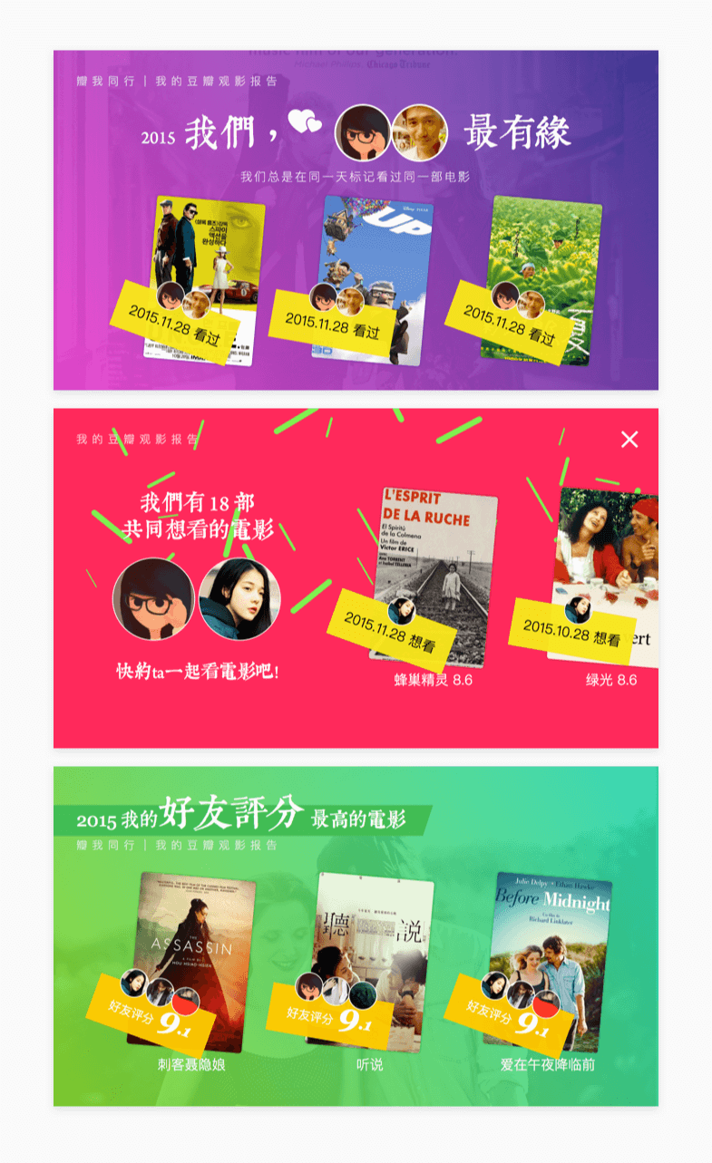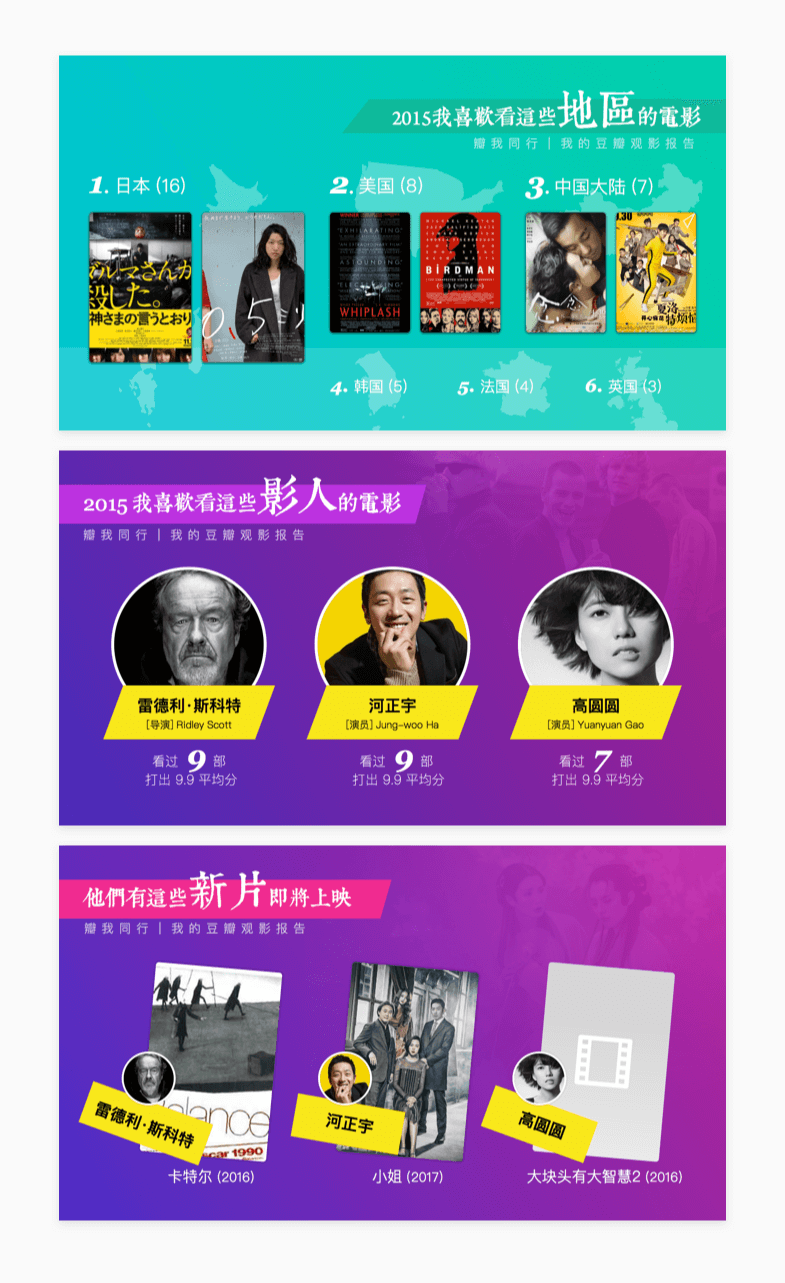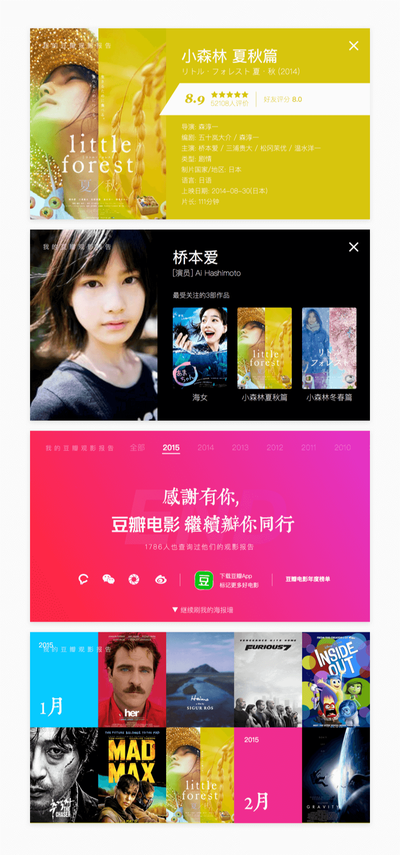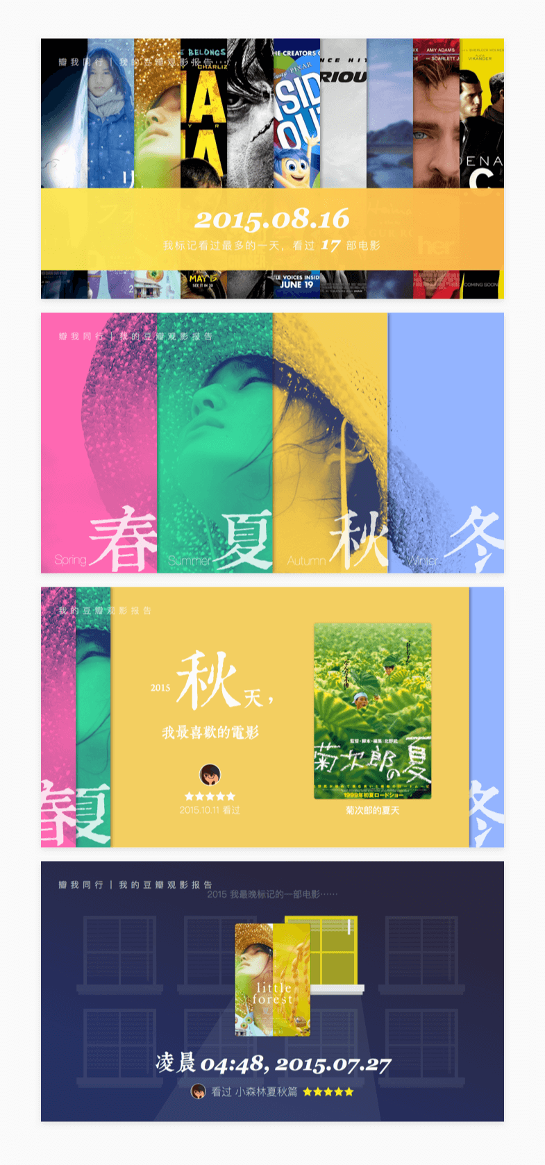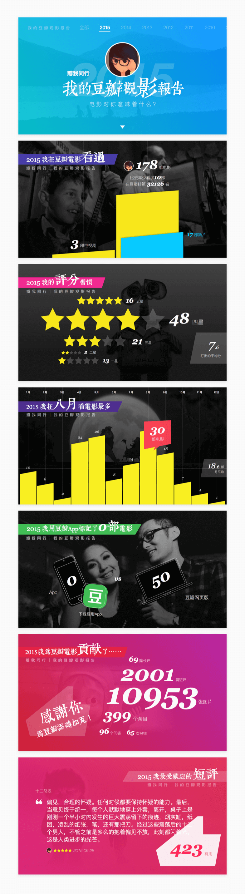 Designed the 2015 My Douban Movie Annual Report, using data visualization methods and emotional design