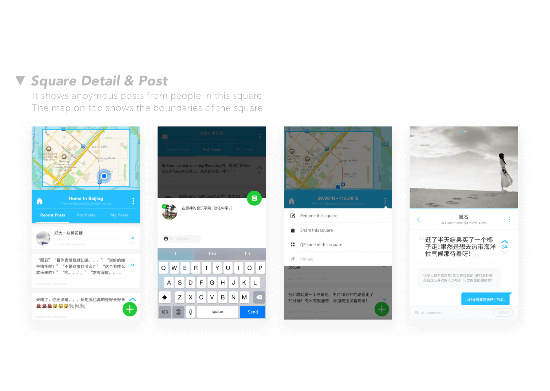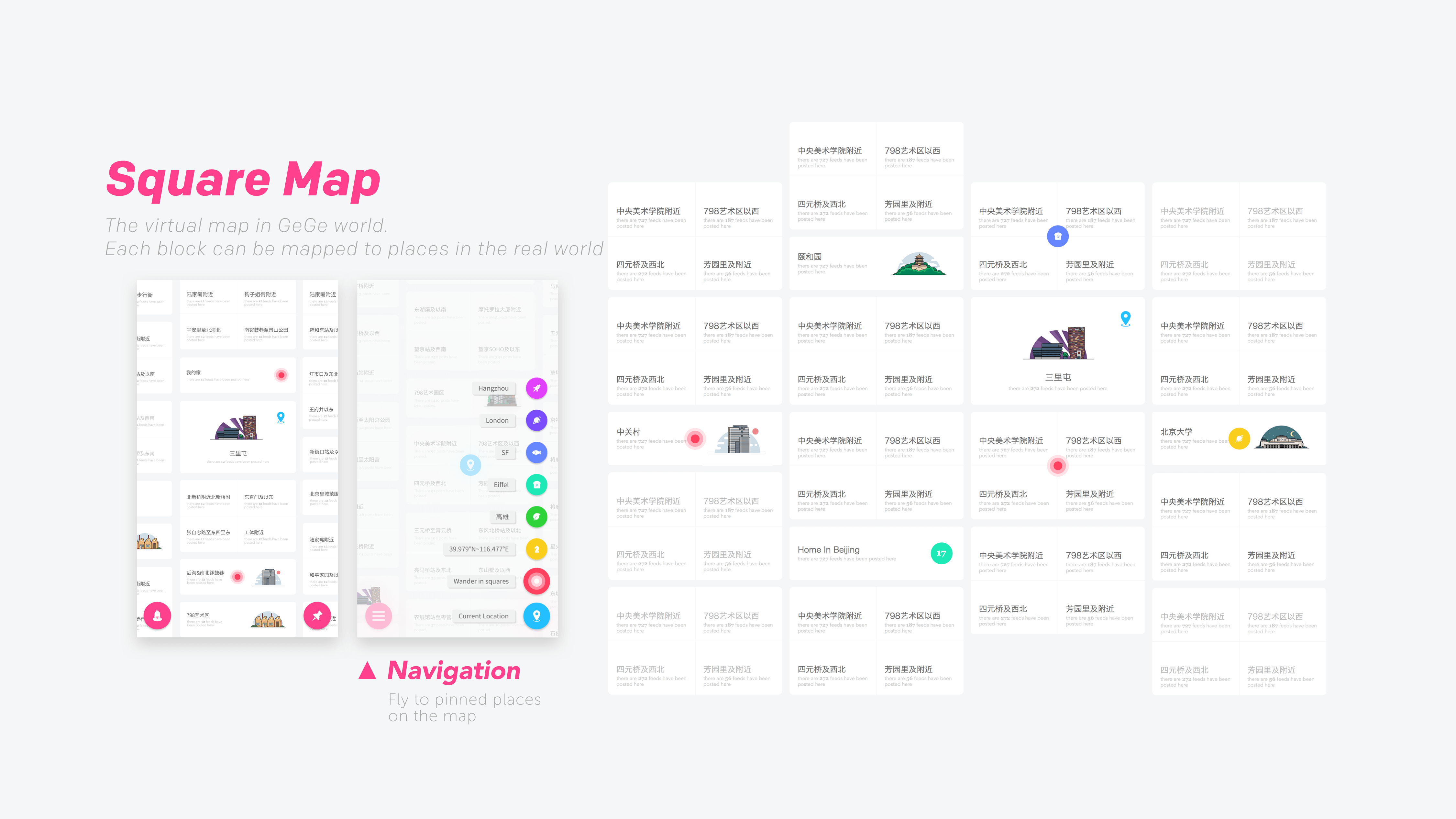 GeGe is a virtual parallel world.At GeGe, we divide the world into numerous squares. A square could be your home square, work square or a square you are just passing by. You may share your thoughts and feelings anonymously in these squares at GeGe.